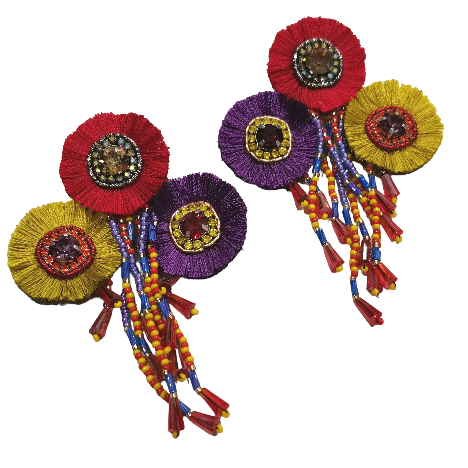 Meravigliosi orecchini in tessuto ricamato a mano con perline e cristalli